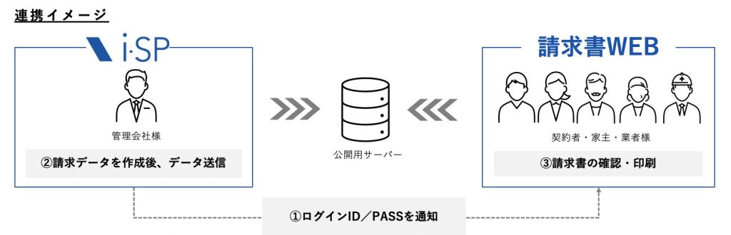 i-SPで作成した請求データをもとに請求書のデータが作成され、指定の日時にWB上に公開されます。そのため送付間違いといったミスを減らす事が出来ます。